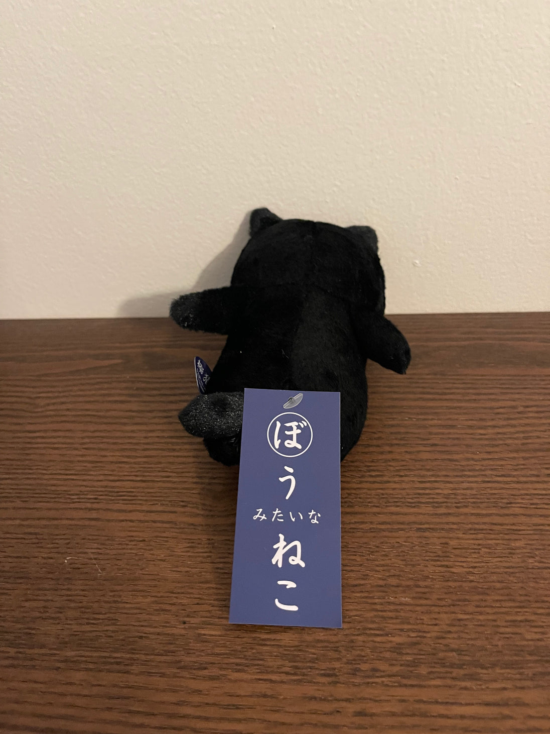 A plush cat that looks like a stick and sleeps like a cat. Bo-neko" for short. A stuffed cat sleeping in the navel. This cute kitty is soft and cuddly.