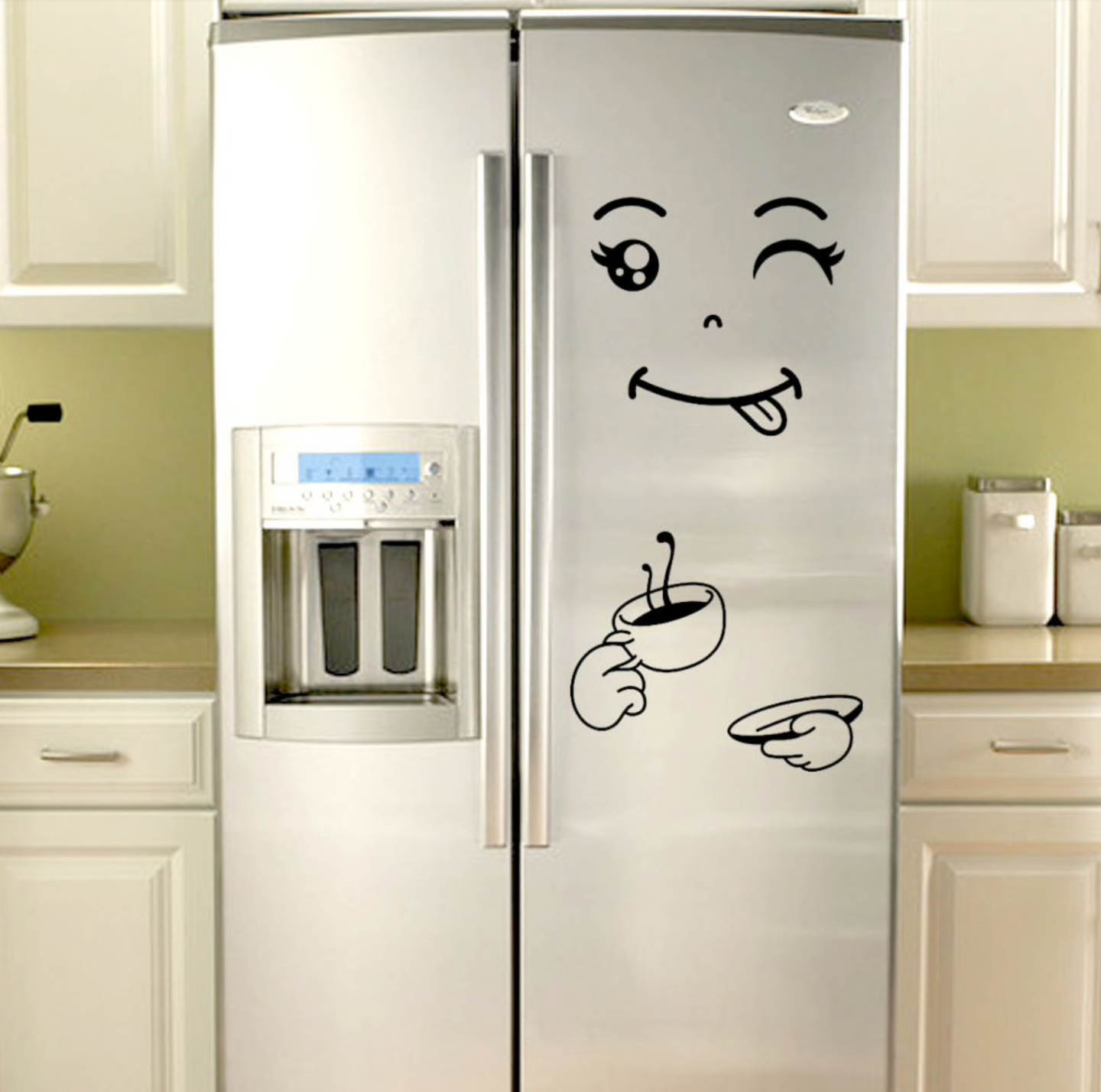 Refrigerator stickers with cute faces. These cute vinyl stickers come with multiple cute faces. If you need new decoration idea for your home fridge, these cute stickers will be perfect for you.