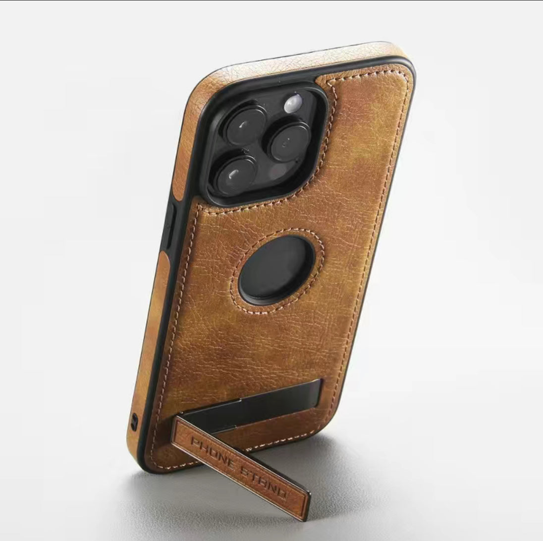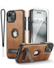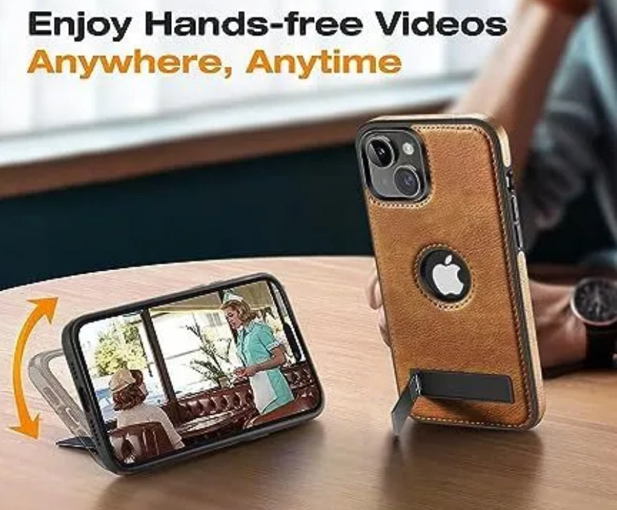 iPhone 14 pro 14 14 Plus 14 Pro max case kickstand leather brown slim back cover case.