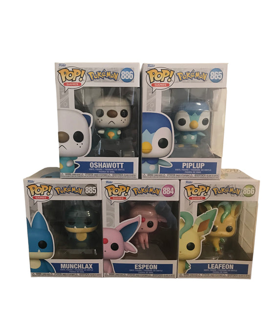 Funko pop bundle Pokemon lot. All pops are brand new in mint condition. Condition: Mint What you get: - x1 Funko pop Pokemon Piplup - x1 Funko pop Pokemon Leafeon - x1 Funko pop Pokemon Oshawott...Regular price $66.99