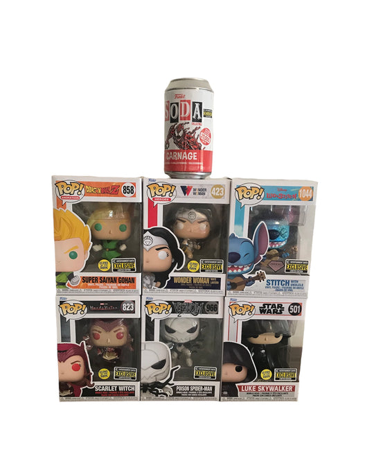 Funko pop lot Marvel exclusive bundle. All pops are brand new in mint condition. What you get: - x1 Funko soda marvel Carnage - x1 Funko pop starwars exclusive Luke Skywalker - x1 Funko pop exclusive...Regular price $107.00 -