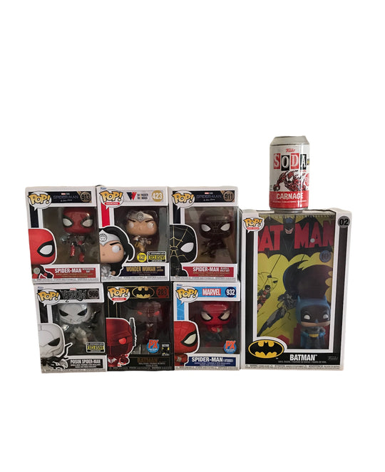 Funko pop lot Marvel and DC exclusive bundle. All pops are brand new in mint condition. What you get: - x1 Funko soda marvel Carnage - x1 Funko pop dc exclusive Batman Red Death - x1...Regular price $124.99