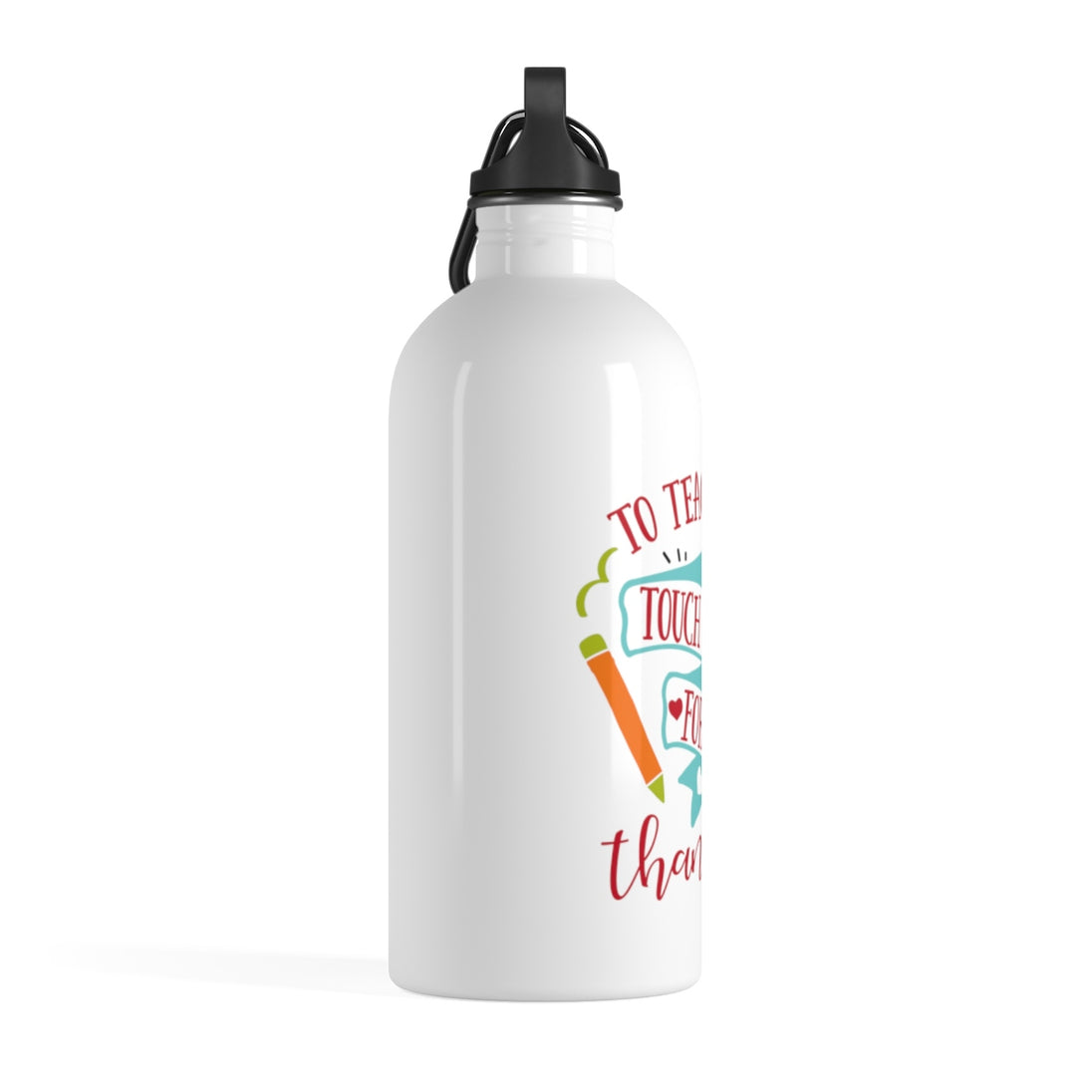 Teacher gifts, a perfect personalized water bottle for that favorite teacher who has touched your heart. Personalized water bottle, keep yourself hydrated in style. This perfect size stainless steel water bottle has a safe closing to keep ones bag dry, while amazing quality print makes it as appealing as practical. For travels, dance classes, or on a desk next to ones laptop - an excellent choice for every occasion and a great personalized gift.