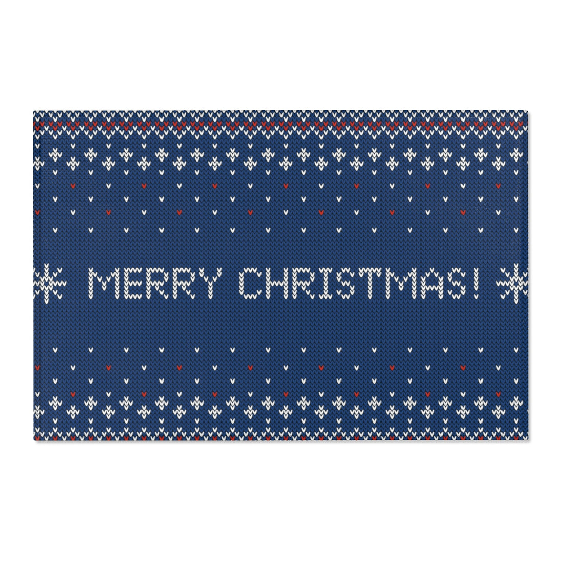 Christmas decorations - Blue Christmas Knitted Mat | Custom bath mat | Christmas gift