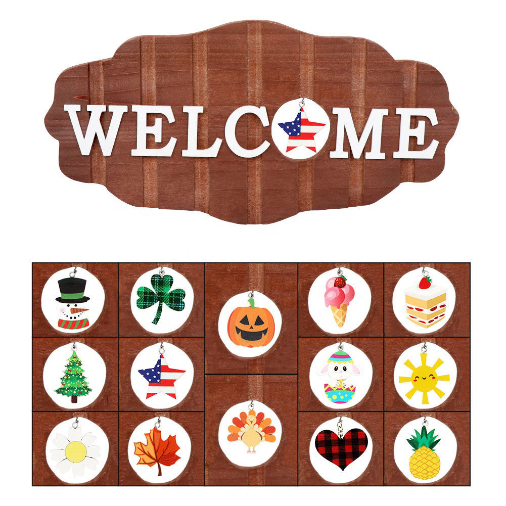 Hanging Decoration Creative Wooden Replaceable Christmas Halloween Party Home Door Welcome Sign.