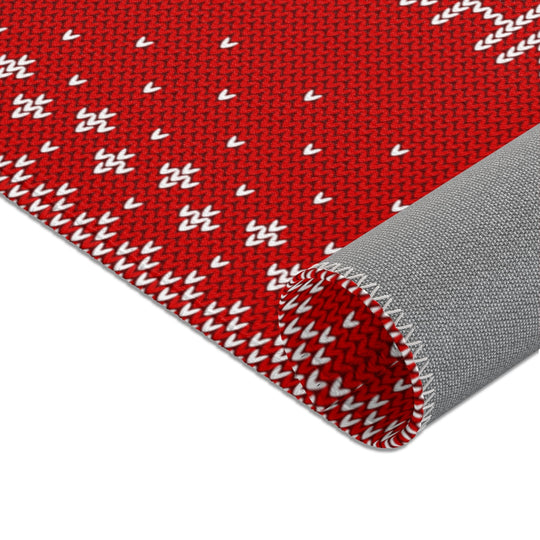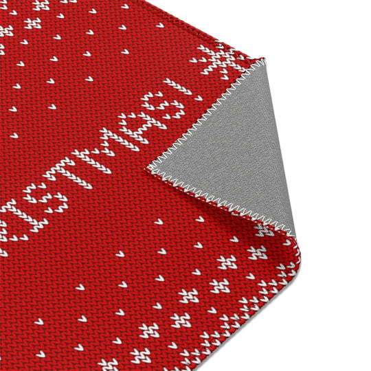 Christmas rug with a nice red background. This durable area rug will surely make a style statement in any room. Add playful, colorful or stylish graphics to effortlessly match your aesthetics. This area rug features hemmed...Regular price $35.99 -