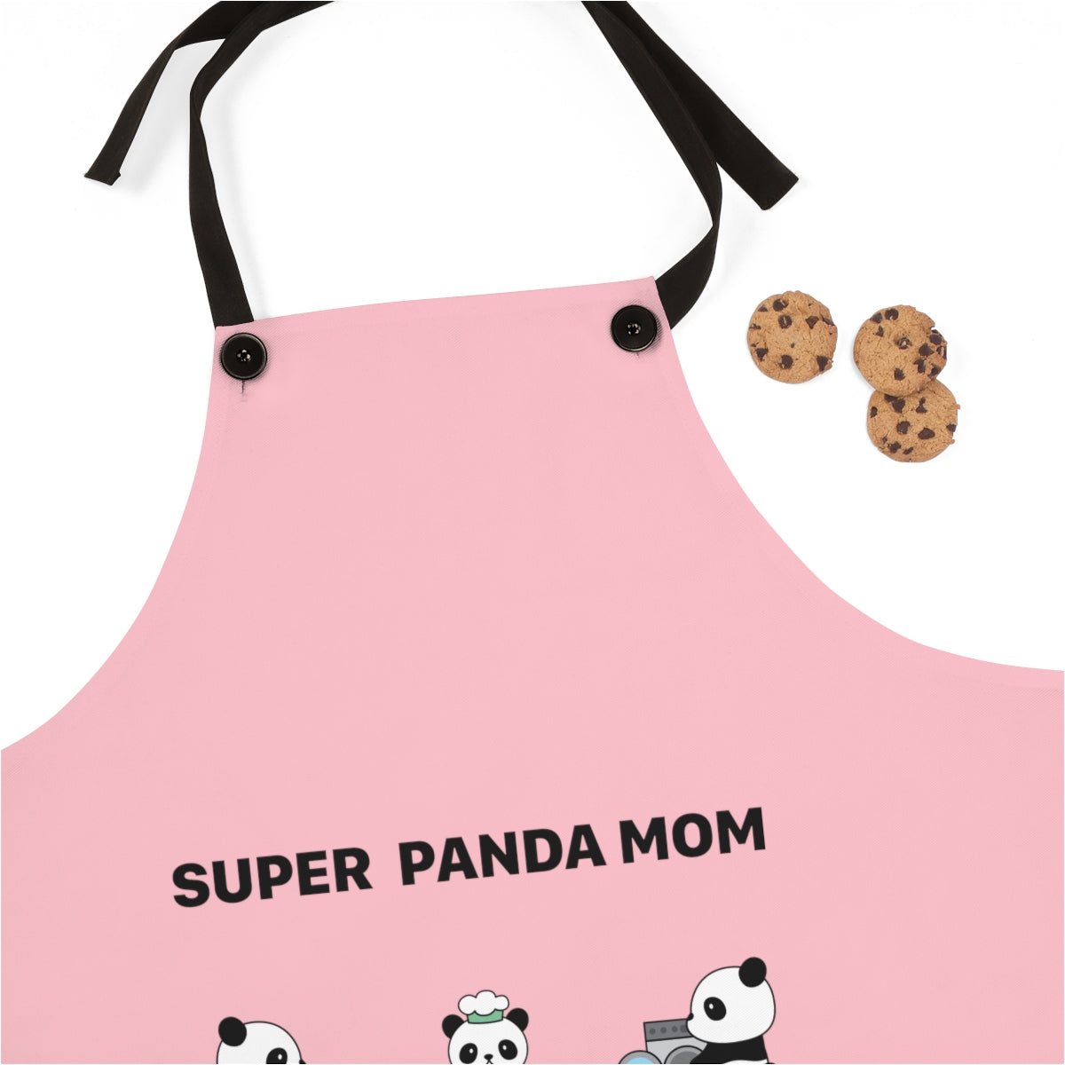 Apron for women with super mom panda printed on it. Our Poly Twill Apron is a perfect cooking accessory. Lightweight, stylish and durable, this custom apron comes with your custom design and will make your wife/husband look great during those cookouts.