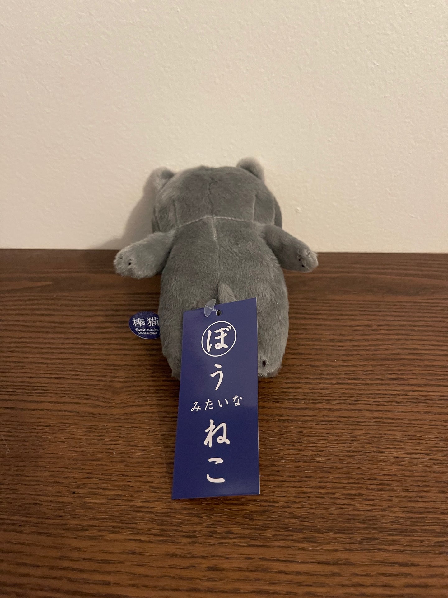 A plush cat that looks like a stick and sleeps like a cat. Bo-neko" for short. A stuffed cat sleeping in the navel. This cute kitty is soft and cuddly.