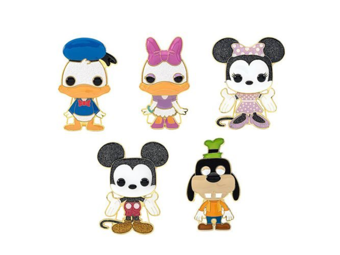 Each Pin measures approximately 3 3/4-inches tall, just like the Pop! Vinyl Figure they're based on. Not only do the pins have the standard pin backings so you can attach them to bags or a cork board; they also have a "Funko Crown" pin stand allowing them to stand up for a dynamic display!
