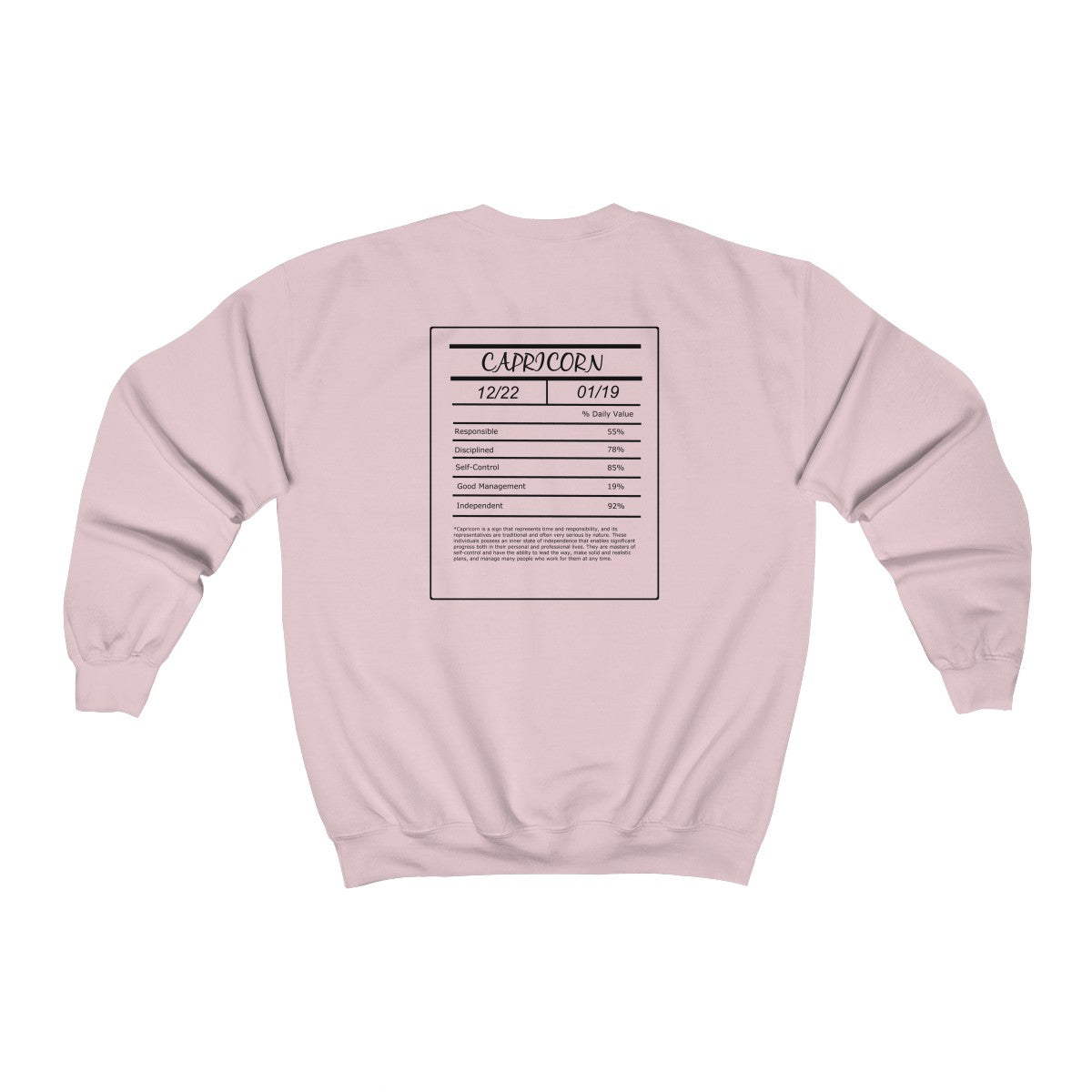 Women sweatshirts for Capricorn women. This soft sweatshirt has a loose fit for a comfortable feel. With durable print, it will be a walking billboard for years to come. If you need gift idea for her, this is a perfect gift for women who likes a sweatshirts without a hoodie.