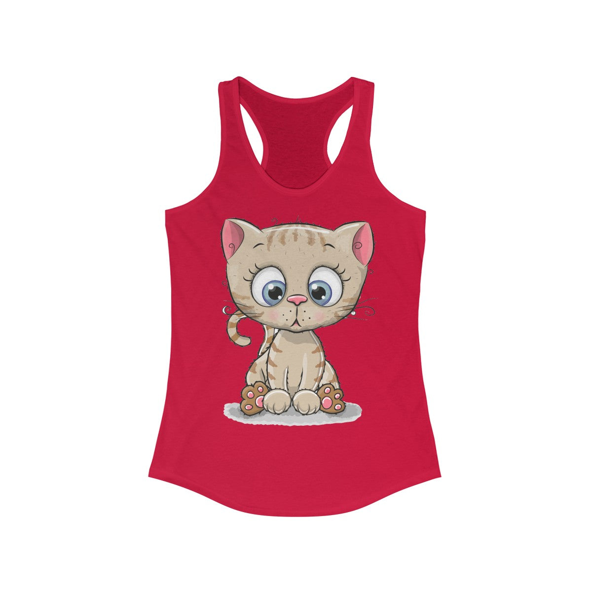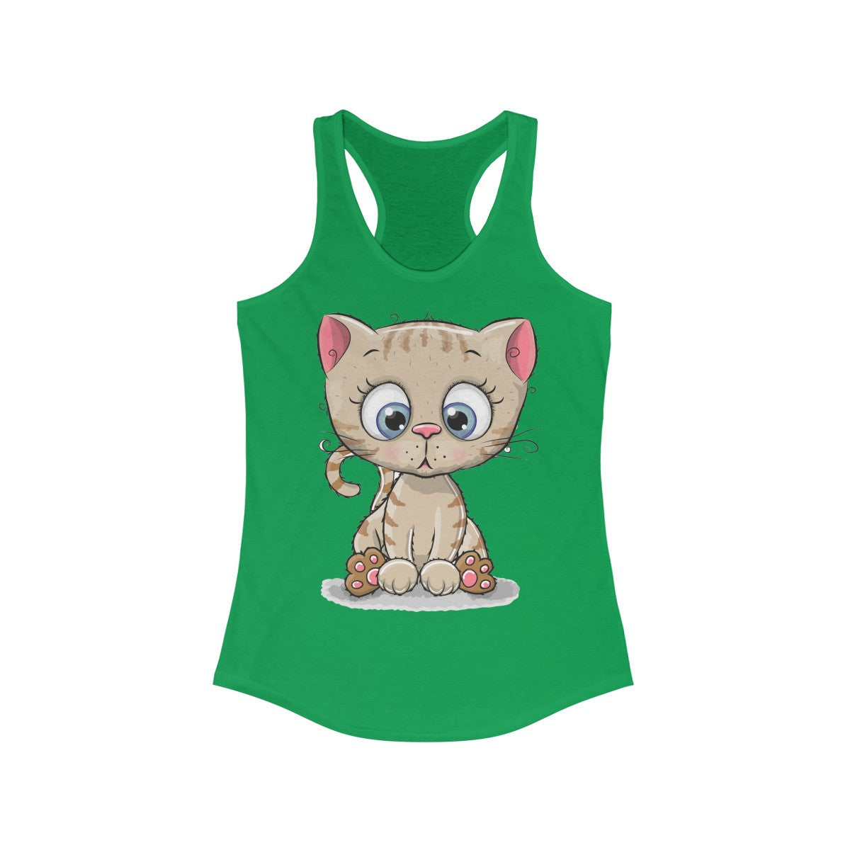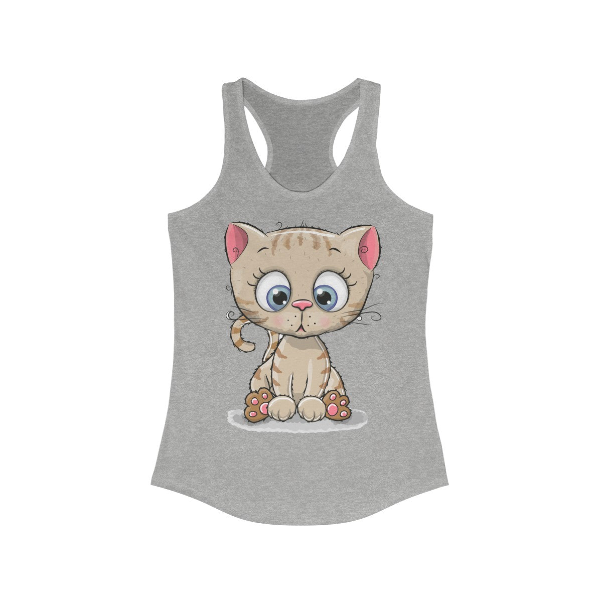 Women tank top with cute kitty printed on. A high quality print of this slim fit tank-top will turn heads. And bystanders won't be disappointed - the racerback cut looks good one any woman's shoulders.