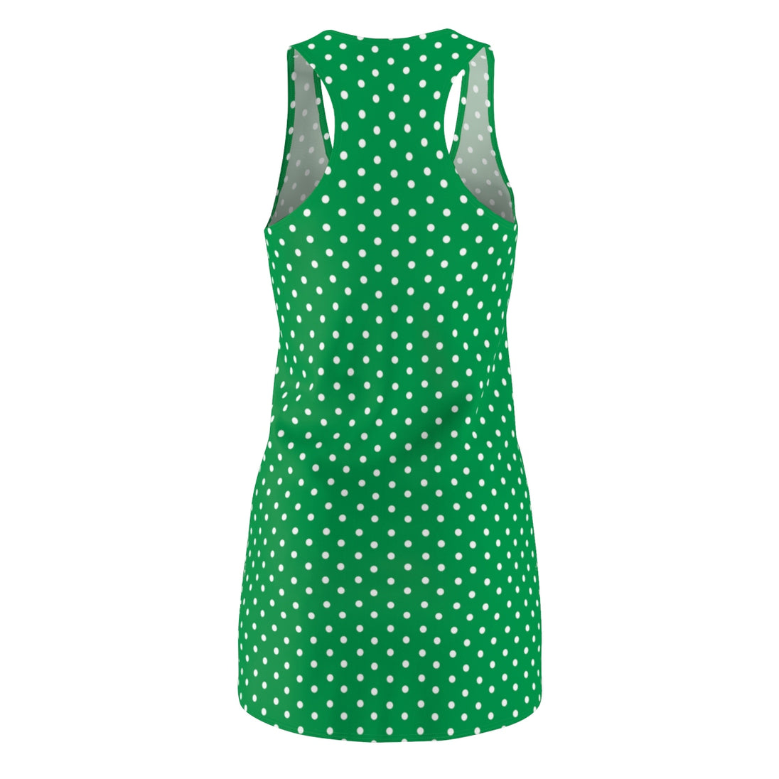 Printed dresses with white dot green background. A great Christmas gift for her. Feminine and stylish, yet really comfortable dress. This high quality AOP tank dress is appealing from every angle. Inspired by the freedom of creativity, it will instantly become everyone's all-time favorite. This is a perfect dresses for women who needs a new look for Christmas.