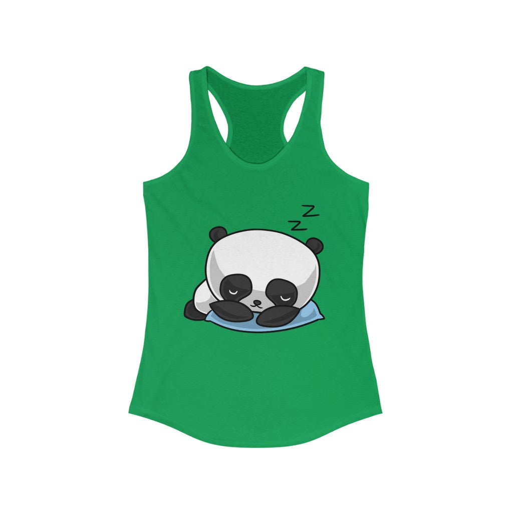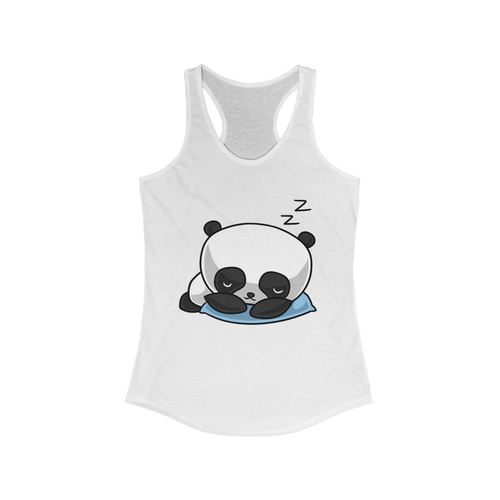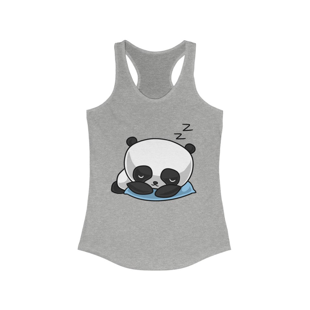 Women tank top with sleeping panda. This is a high quality racerback tank top. The racerback cut looks good on any women's shoulders. The women tank top comes with variety of different colors for you to choose from.