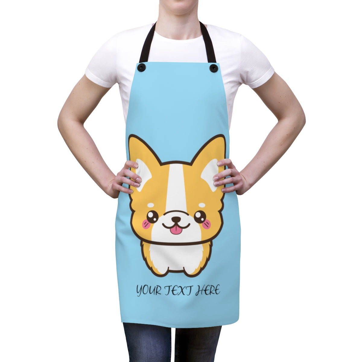 Apron for women with cute corgi printed on it. Our Poly Twill Apron is a perfect cooking accessory. Lightweight, stylish and durable, this custom apron comes with your custom design and will make your wife/husband look great during those cookouts.
