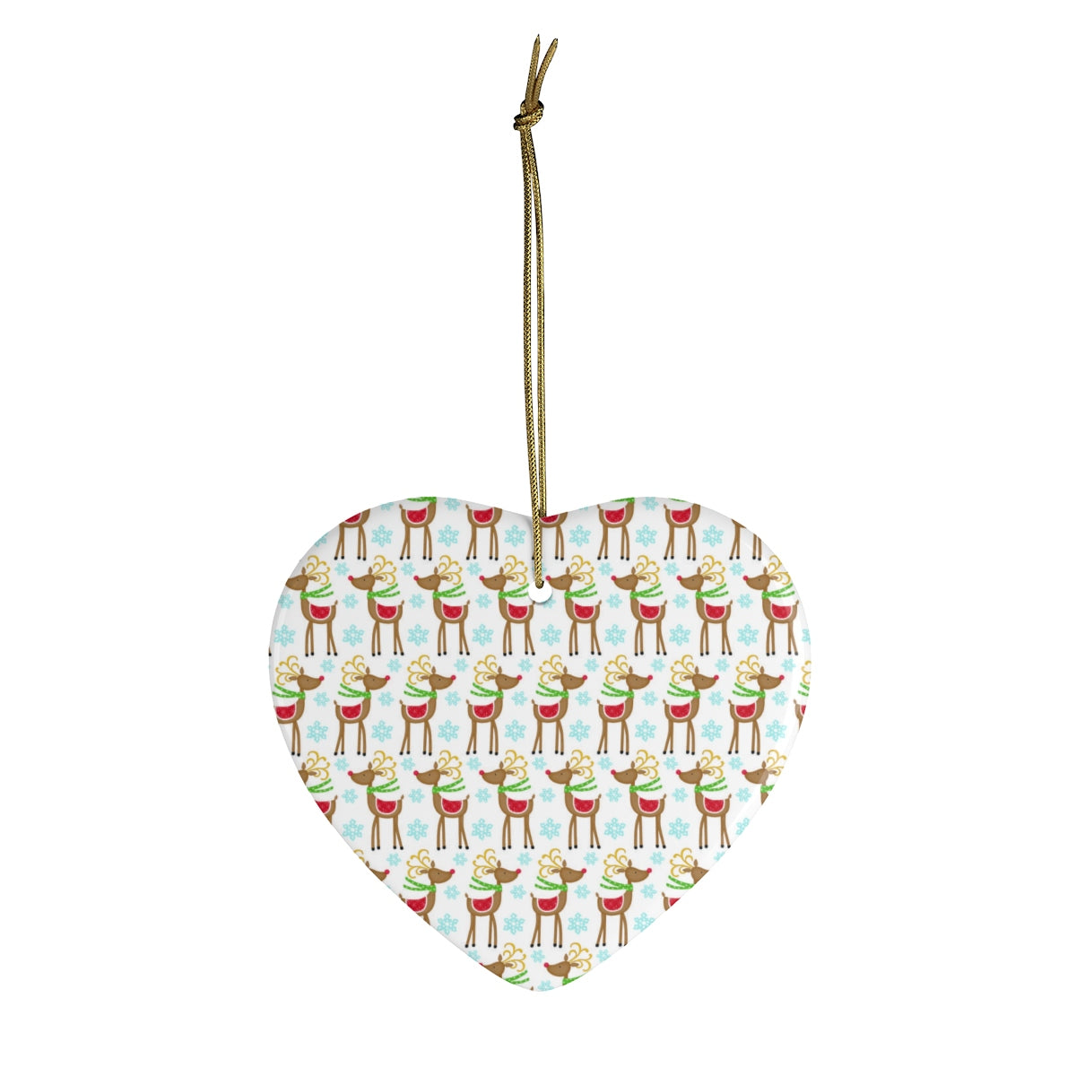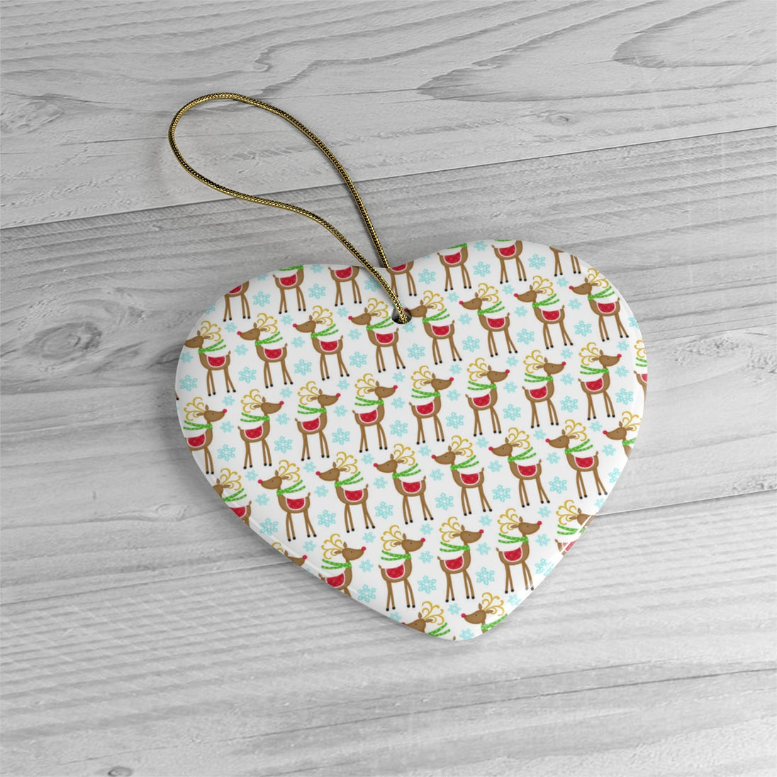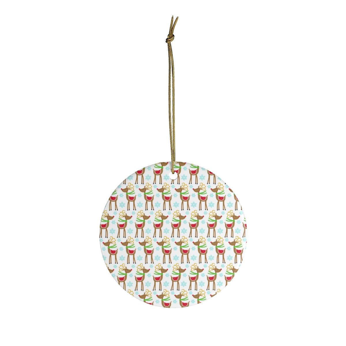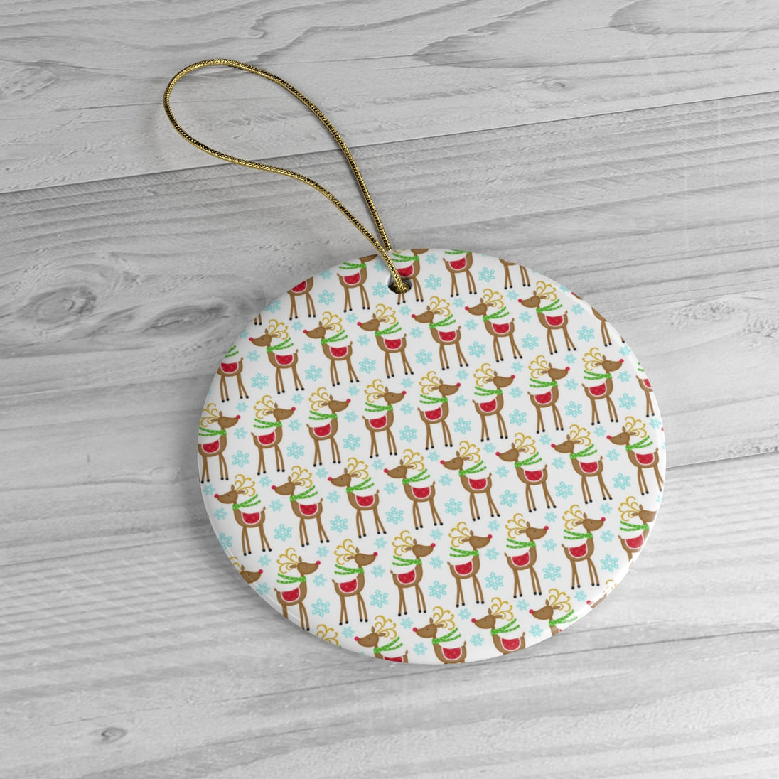 Christmas ornaments with reindeer printed on one side. This is a great Christmas decoration for your home during Christmas time. These Christmas ornaments can be customized. Design your own set of Christmas decorations to make your tree hip, traditional, or funky to suit your unique style. A set of custom-made Christmas ornaments can be the perfect heirloom to use year after year, generation after generation. These ceramic ornaments attach securely to the tree to ensure that they’re cat- and child-proof.