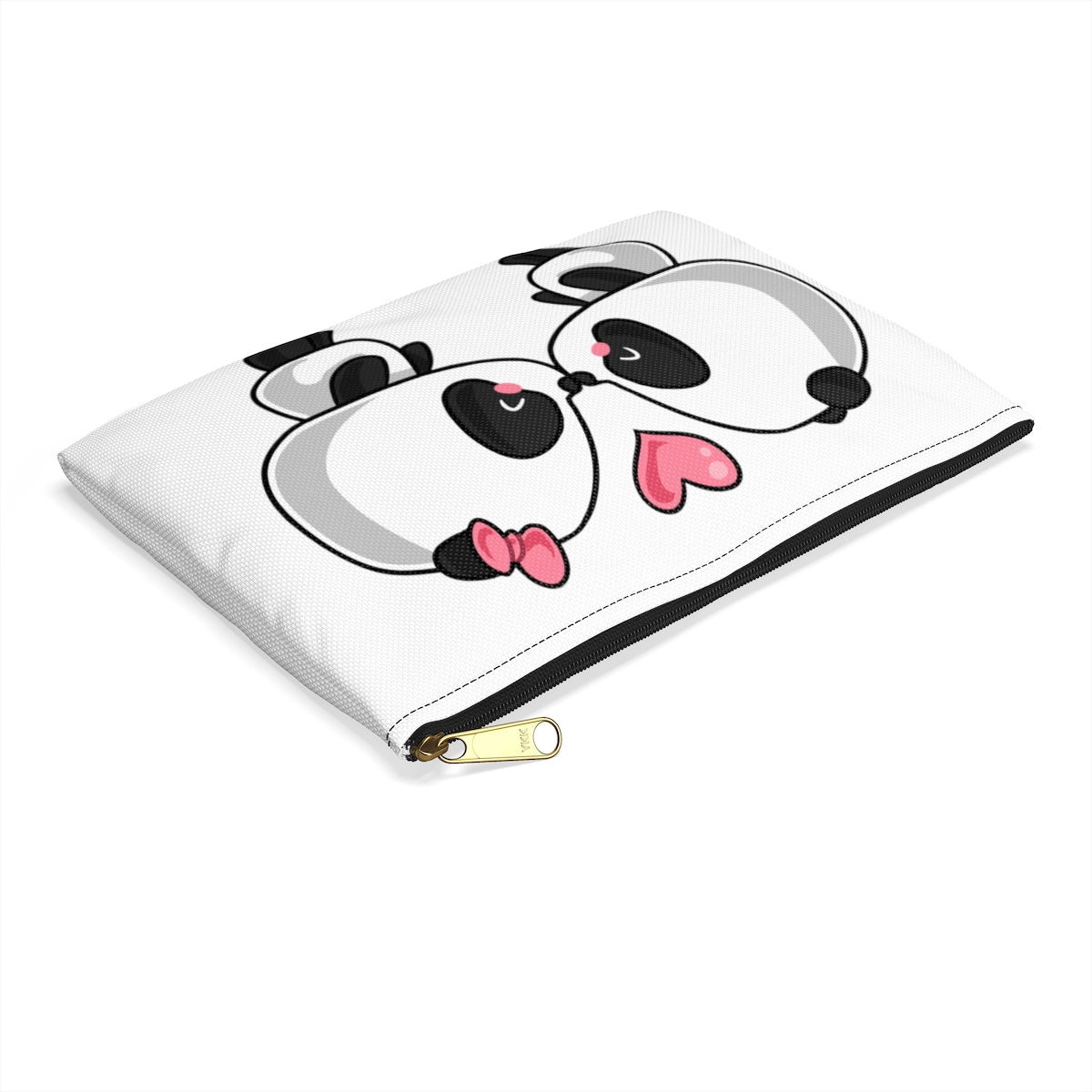 Makeup bag, a zipper pouch with various of sizes, our flat makeup bag vary from small to large and can be used for pretty much anything. They make excellent pencil cases and cosmetic travel bags. The cosmetic bag is constructed of a durable material with a zipper closure. This cute kissing panda that is printed on the makeup bag will put a smile on your face.