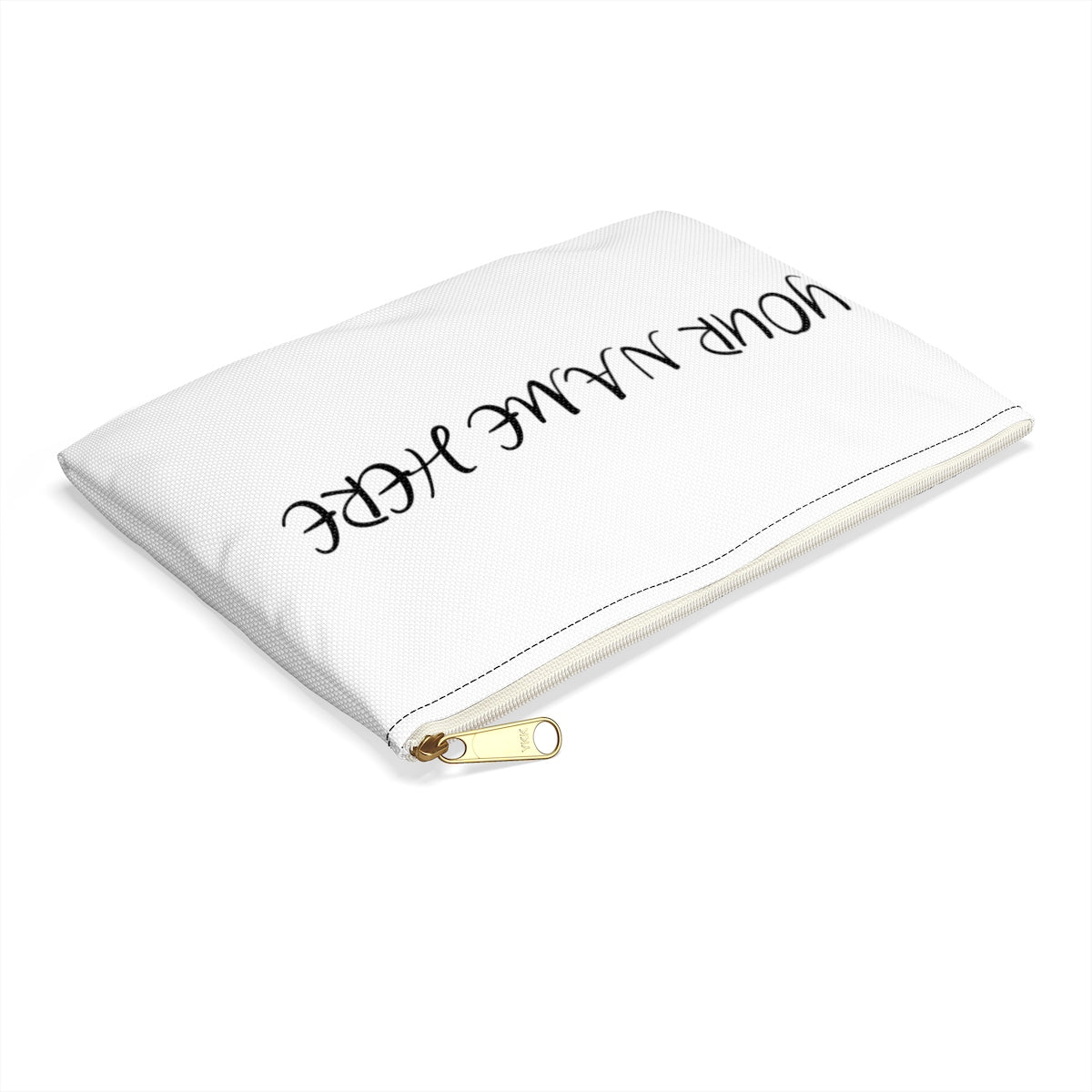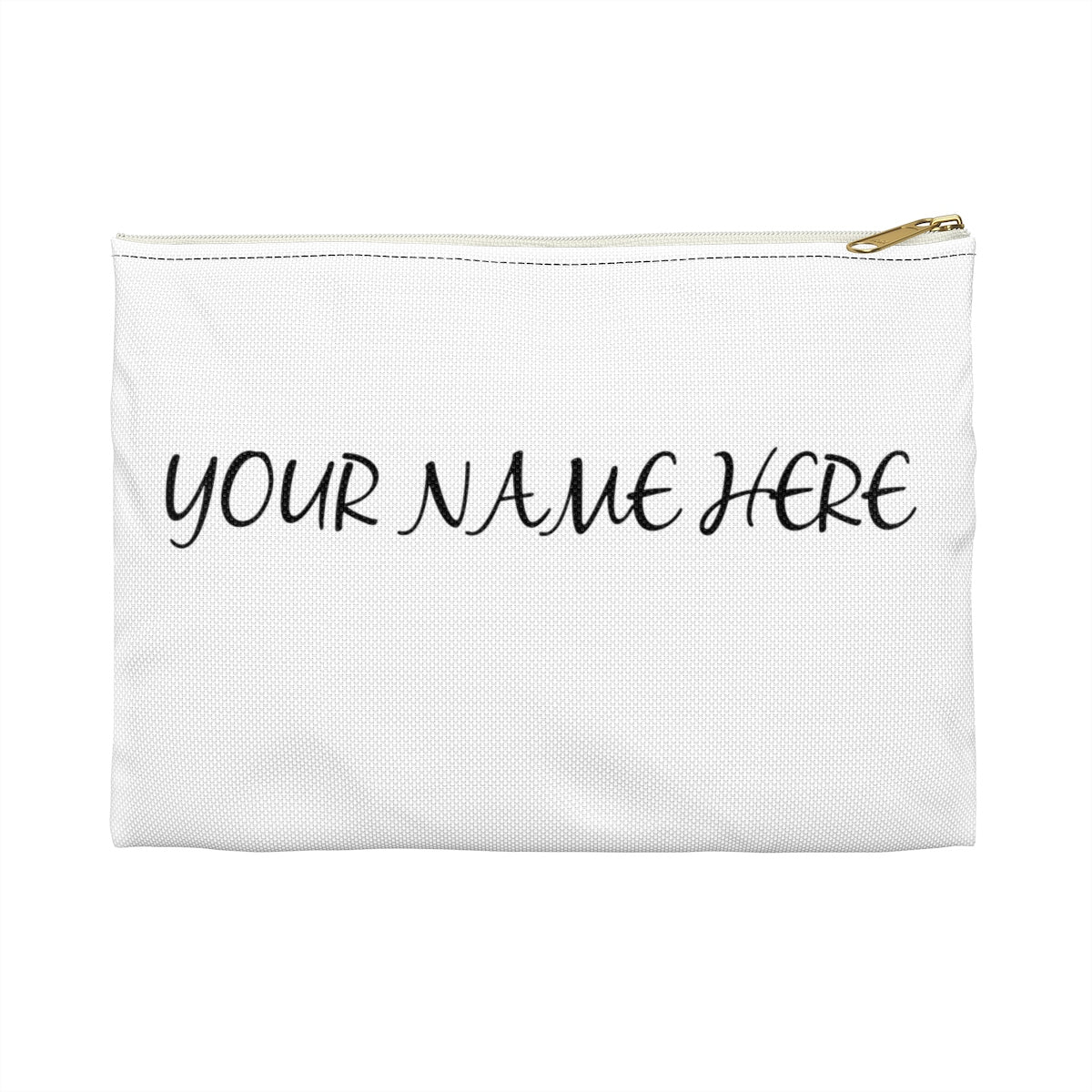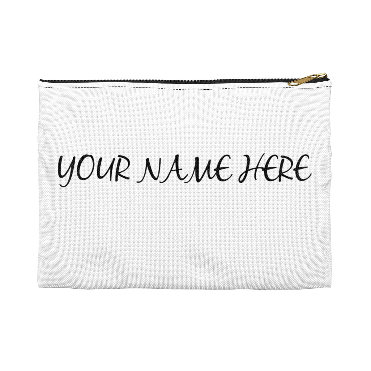 Personalized pouch with custom name, our flat pouches vary from small to large and can be used for pretty much anything. They make excellent pencil cases and cosmetic travel bags. They are constructed of a durable material with a zipper closure.