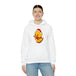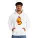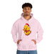 This unisex heavy blend hooded sweatshirt is relaxation itself. Made with a thick blend of cotton and polyester, it feels plush, soft and warm, a perfect choice for any cold day. In the front, the spacious kangaroo pocket adds daily practicality while the hood's drawstring is the same color as the base sweater for extra style points.