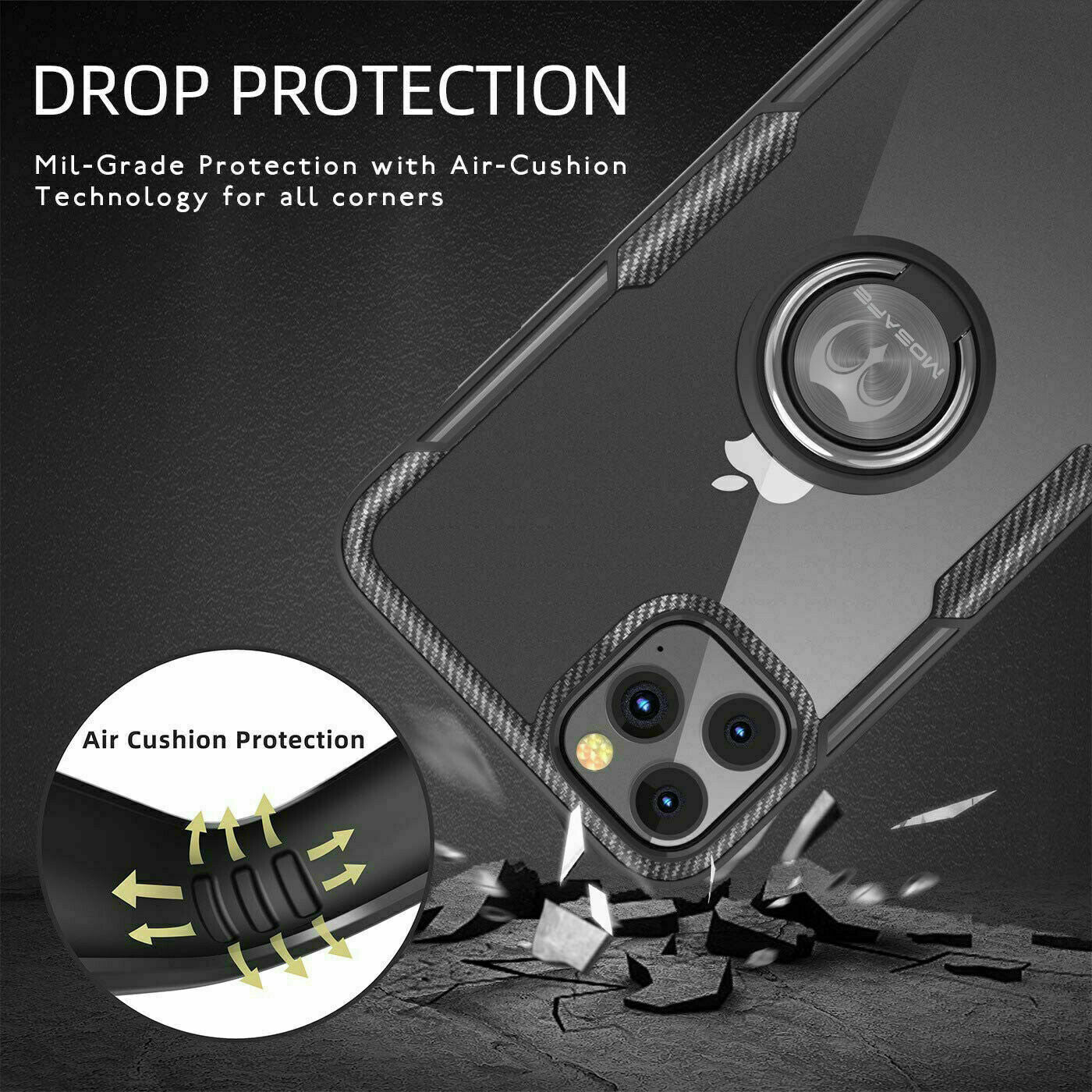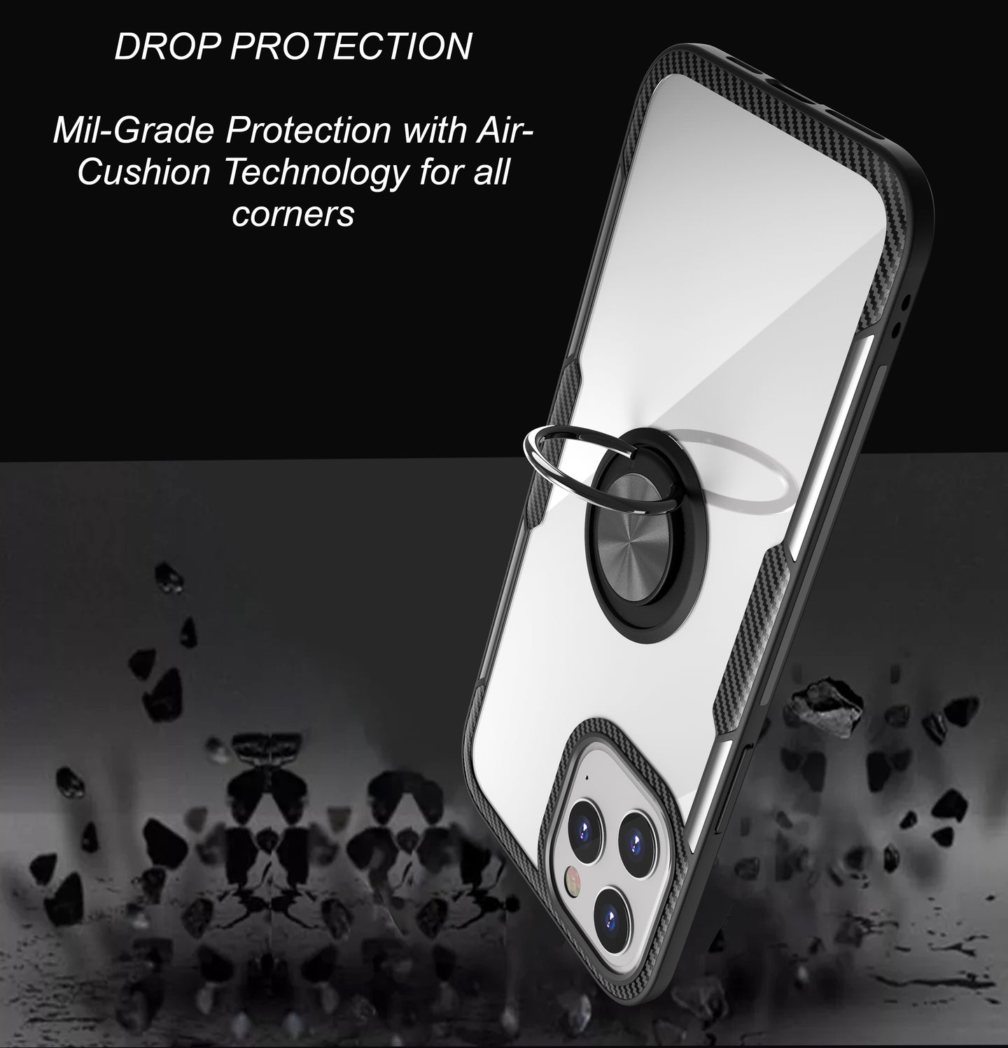 iPhone 12 pro max / 12 pro / 12 / 12 mini / iPhone 11 / iPhone 11 Pro / iPhone 11 Pro max case clear thin, this shockproof iPhone clear cover comes with a protective ring which can be used as a kickstand