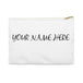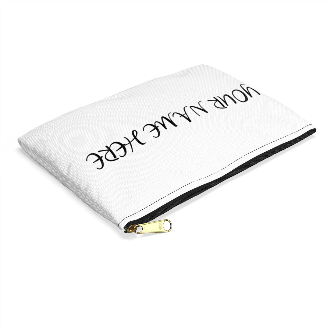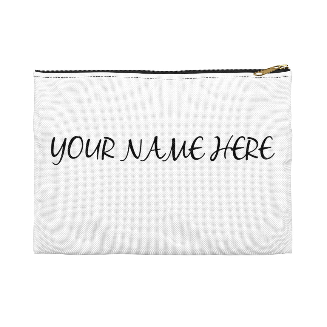 Personalized pouch with custom name, our flat pouches vary from small to large and can be used for pretty much anything. They make excellent pencil cases and cosmetic travel bags. They are constructed of a durable material with a zipper closure.